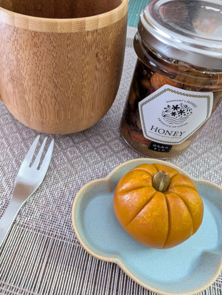 真ん中の写真のかぼちゃみたいな形のスイートポテトは鞠智というところで購入、おしゃれな和菓子中心のお店でした。