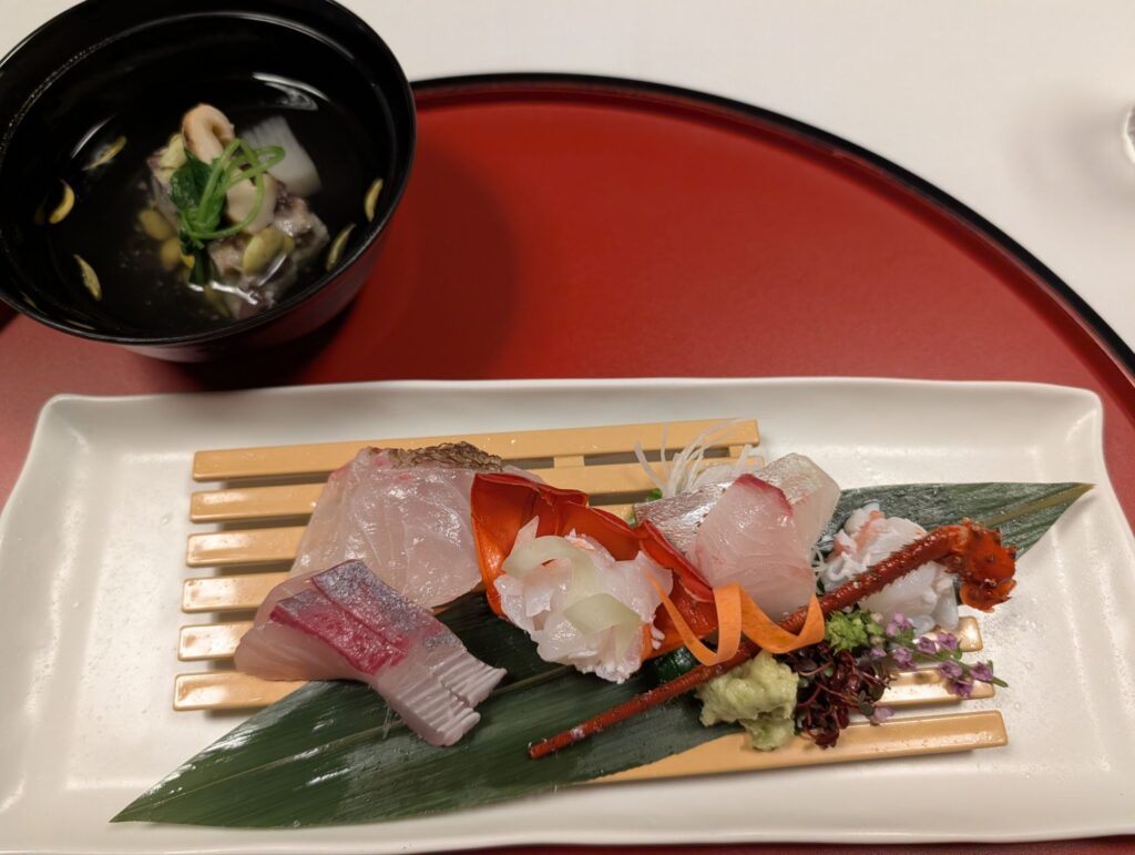関アジ、関サバ、伊勢エビのお刺身(ちょっとうろ覚え)